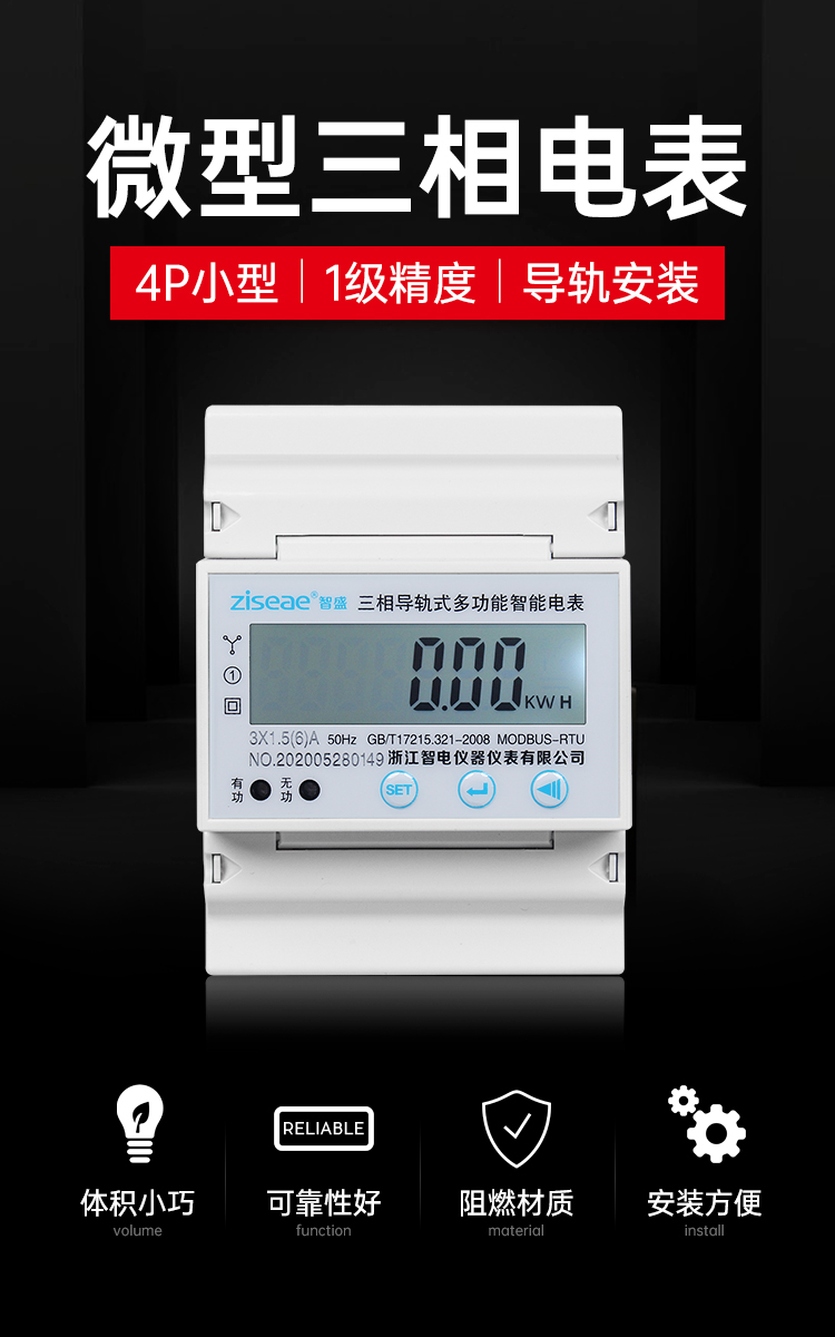 導軌式電表是新-代微型電能表,采用標準DIN35mm導軌式安裝,結構模數化設計,寬度與微型斷路器匹配,可方