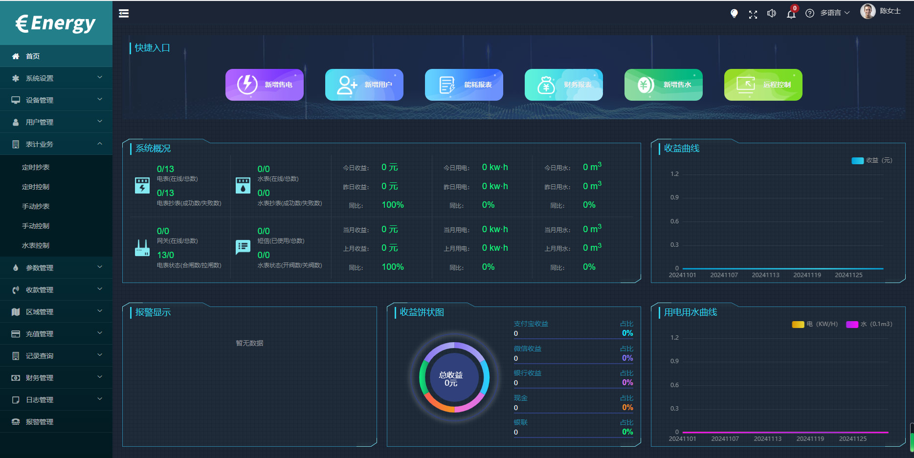 自動抄表:系統自動記錄每個時間段內的用水、用電數據,避免了人工抄表的繁瑣性和不準確性,費用計算:根據不同用戶的合同條款和用量,自動計算出各個用戶應交的水電費賬單生成和推送:系統根據計算結果自動產生費用賬單,并通過電子郵件、短信或移動應用等方式推送給用戶。線上支付:用戶可以直接在系統提供的平臺上通過網銀、支付寶、微信等支付工具支付水電費,簡化了繳費流程,數據統計與報表:系統提供實時數據監控和歷史數據分析,生成各類統計報表。