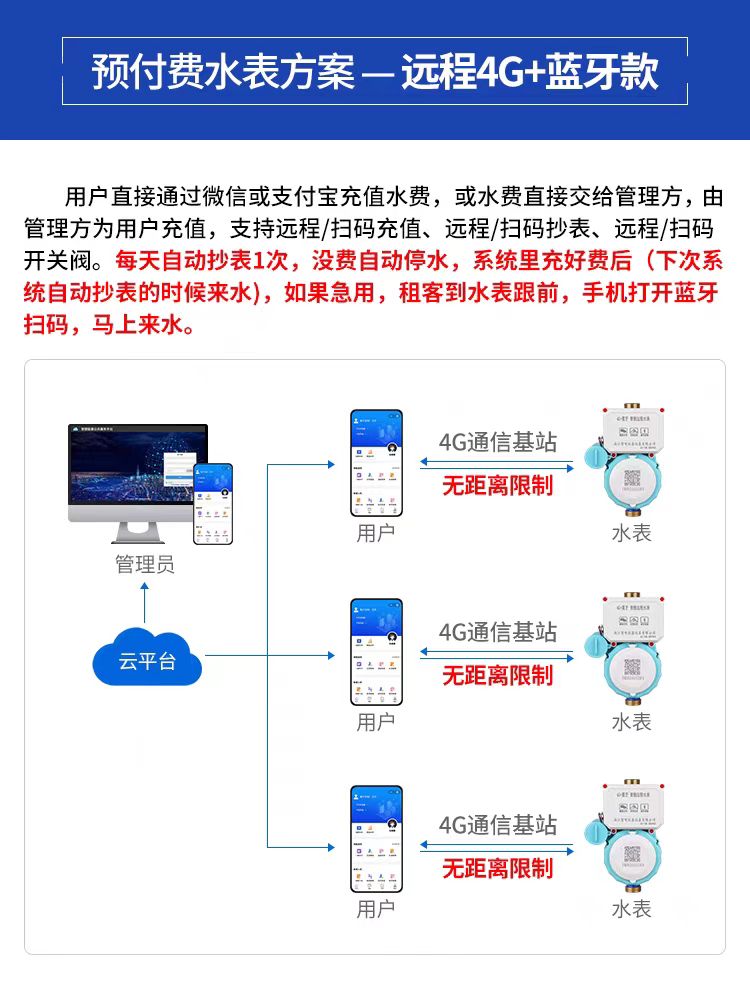 -遠程4G水表由于用戶需要提前充值,管理人員可以獲得更多的流動資金,用于改善基礎設施和服務質量。