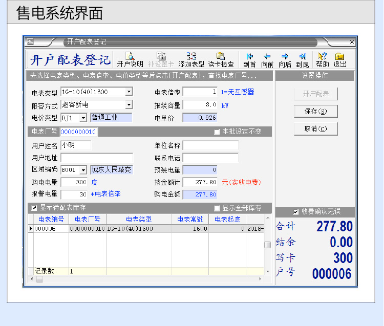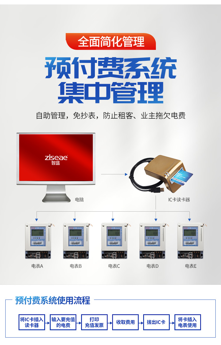 (6)預付費電表的使用流程:1將IC卡插入讀卡器 2輸入要充值的金額 3電影充值發(fā)票 4收取費用 5拔出IC卡 6將IC卡插入電表使用,具體操作如下。