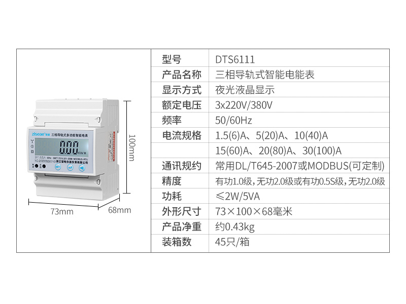 導(dǎo)軌式安裝電能表具有體積小巧、精度高、可靠性好、安裝方便等優(yōu)點,性能指標(biāo)符合國標(biāo)GB/T 17215、GB/T 17883和電力行業(yè)標(biāo)準(zhǔn)DL/T614對電能表的各項技術(shù)要求,適用于政府機關(guān)和大型公建中對電能的分項計量,也可用于企事業(yè)單位作電能管理考核。