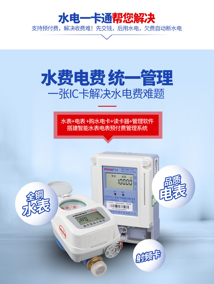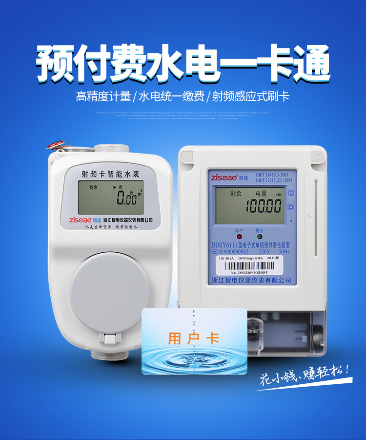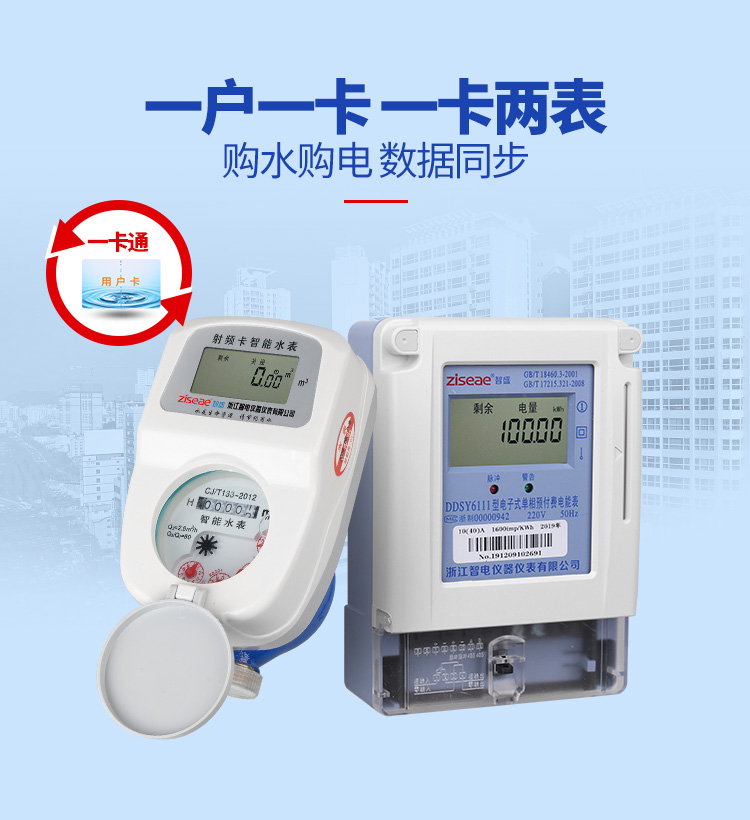 我公司生產(chǎn)的智能水表與電能表實(shí)現(xiàn)一卡通,用戶只需一張卡,即可同時(shí)管理家中所用的電表、水表。