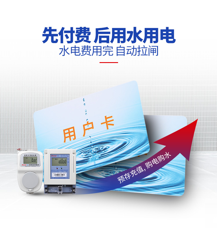 2.預(yù)付費(fèi)功能:先交費(fèi)、后用水,無費(fèi)自動(dòng)關(guān)閥,交費(fèi)重新刷卡后自動(dòng)通水。